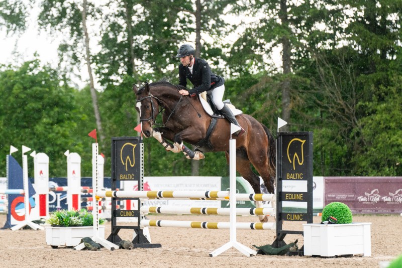 At the Four-Year-Old Eventing Horse Championship, he achieved 3rd place. Cross-country obstacles are not a problem for him – he is brave and confident. He is good with the farrier and veterinarian and travels well in a trailer, both alone and with a companion.